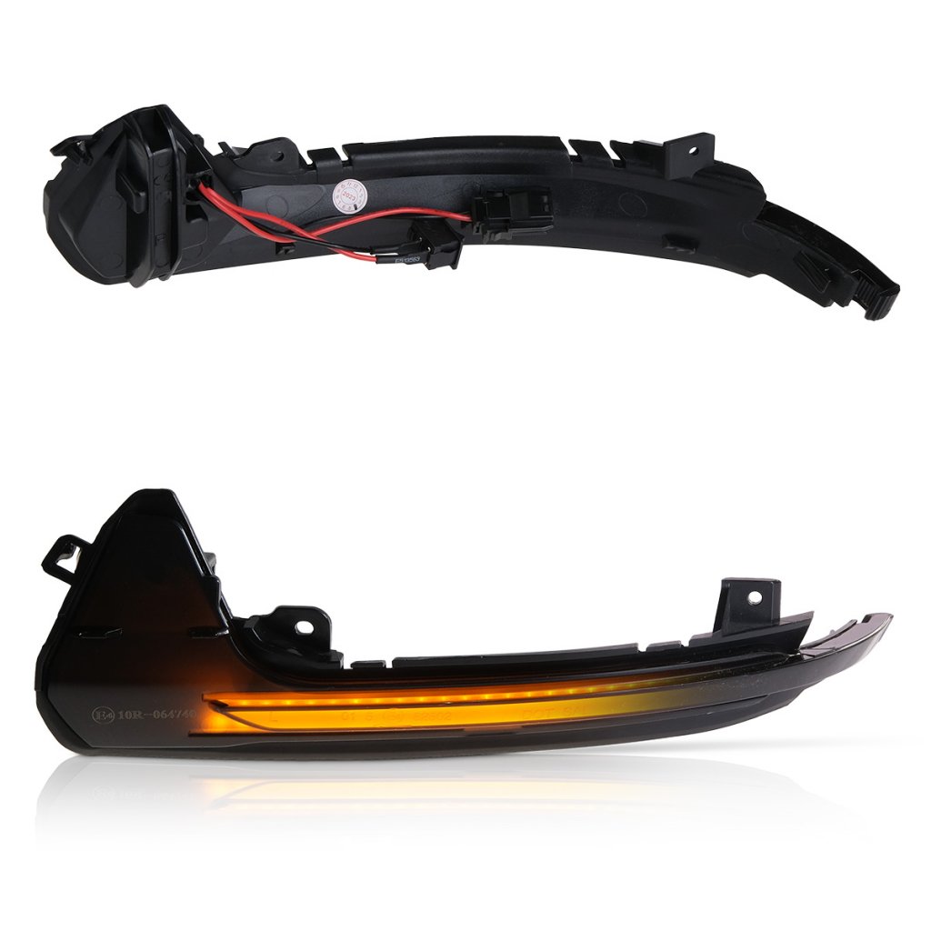 I avstängt läge utstrålar den röktonade spegelblinkersen sportighet och när du sätter på blinkersen lyser den skarpt upp i ett rinnande mönster från sida till sida.