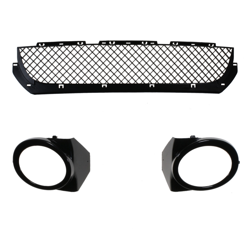 Komplett stötfångare där lister, luftintagsnät och ramar till dimljusen ingår.
