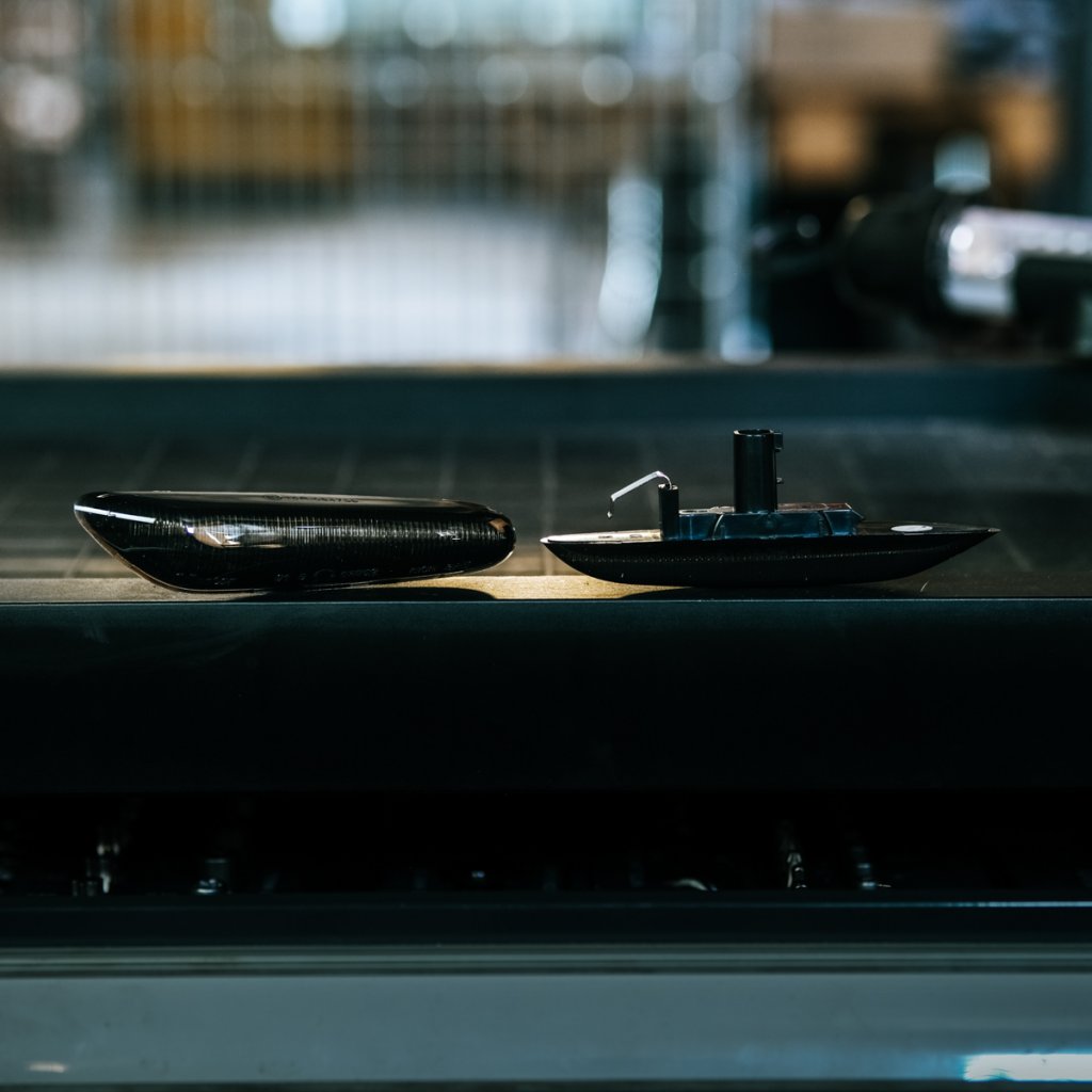 Våra dynamiska blinkers är 100% dynamiska och ljuset rinner fram från ena sidan till den andra när du blinkar.