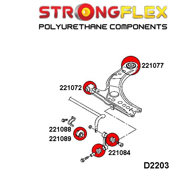 Fördelarna med att använda sig av en polyuretanbussning är bland annat ökad livslängd och bättre väghållning. Monteringen förenklas också många gånger då en stor del av Strongflex bussningar är delade vilket gör att ni ej behöver använda er av en verkstadspress vid montering.