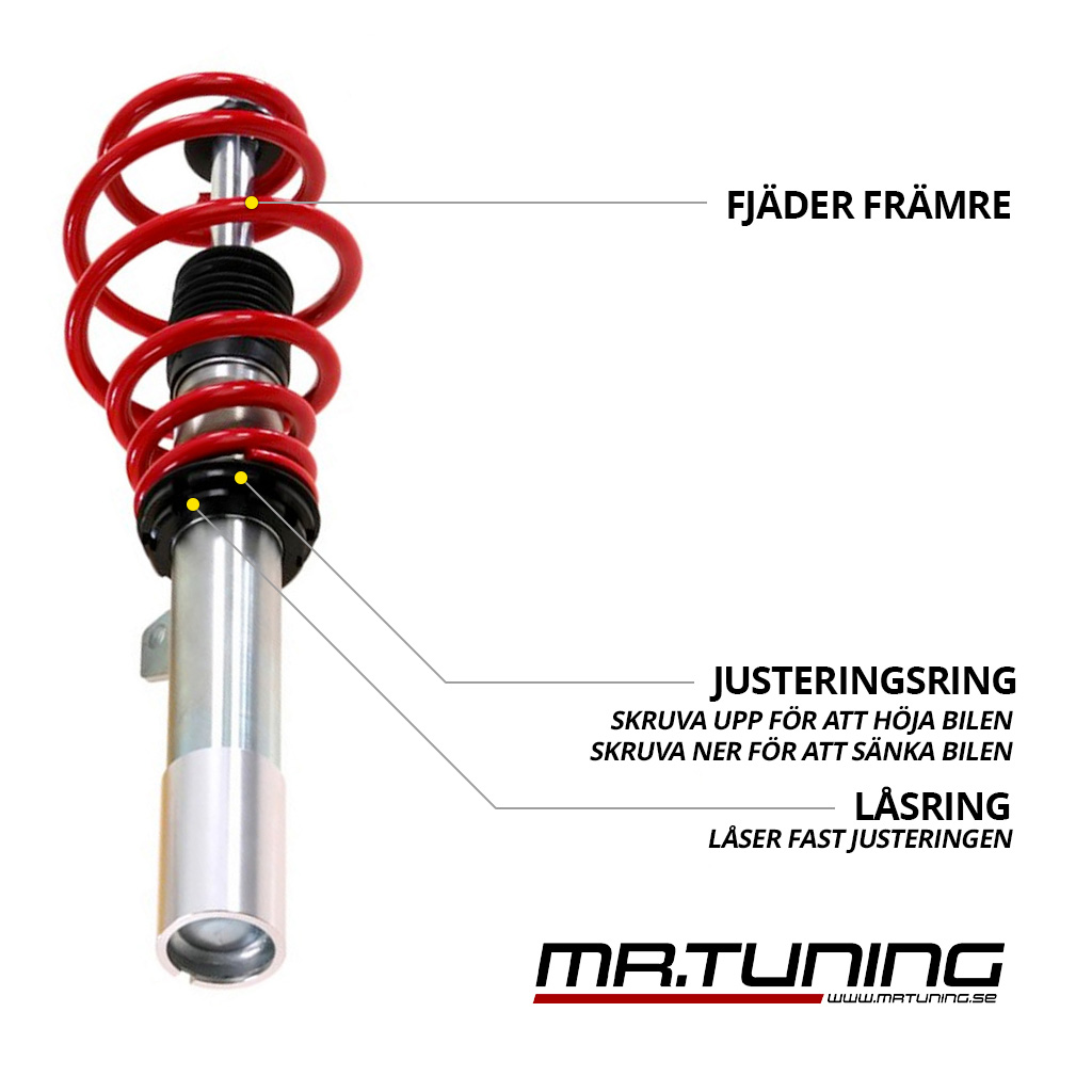 - Komplett sats med coilovers och fjädrar runt om precis som bilden visar