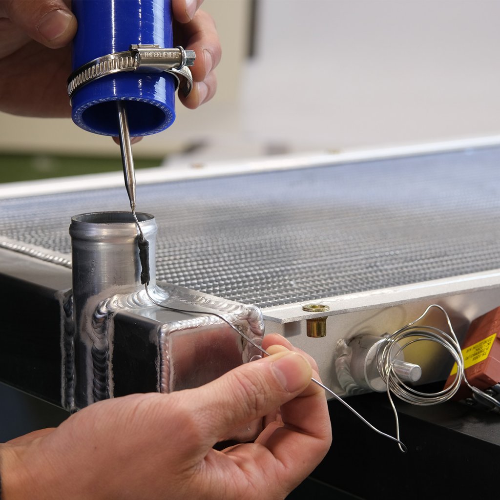 Tempgivaren sticks in i cellpaketet på kylaren alternativ i kylsystemet (ta av kylarslangen och stick in givaren i slangen), tänk på att säkra runt kabeln med PTFE tape.