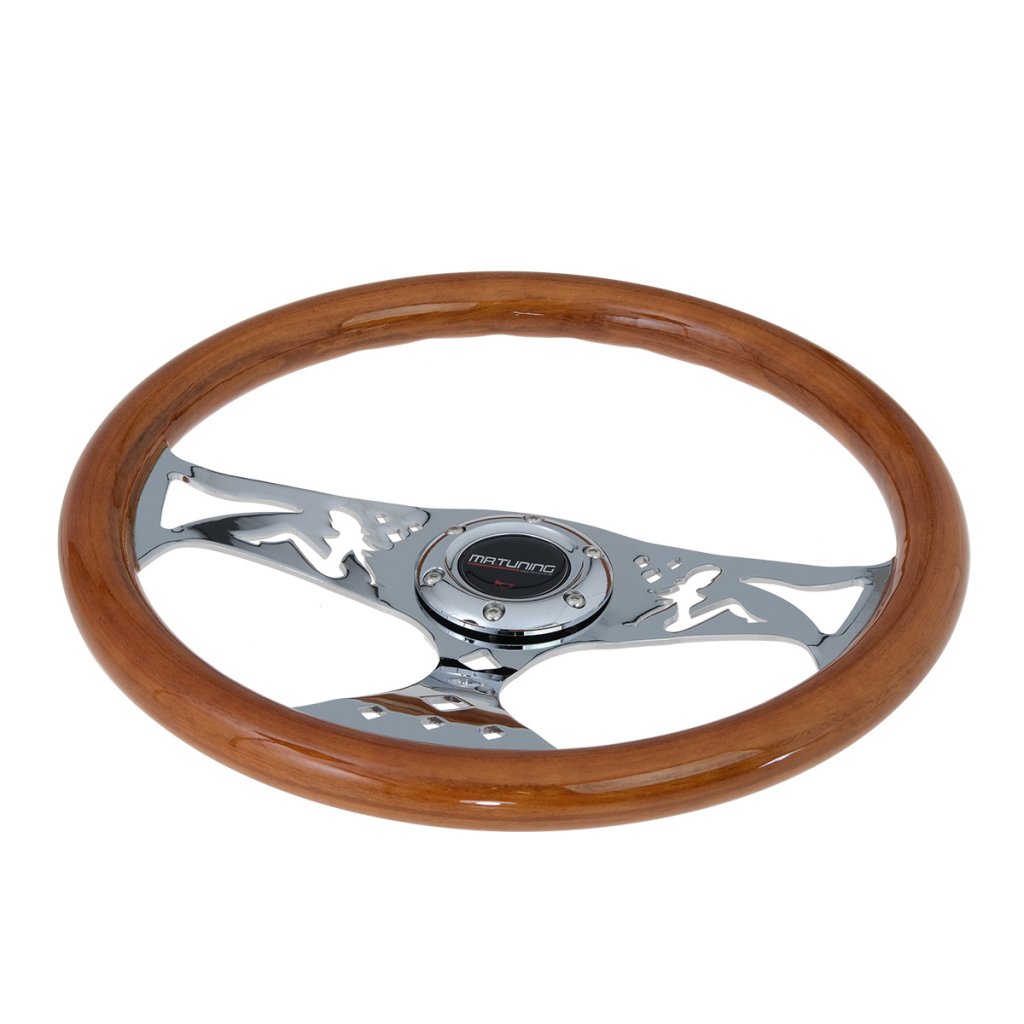 Mr Tuning Träratt Playboy är en ratt för bilar med anpassade rattnav. Denna 350mm trätratt erbjuder en stabil stålkonstruktion, äkta trä och kromat centrum med utskurna detaljer, vilket ger optimal körkänsla och passar Luisi samt Momo rattnav.