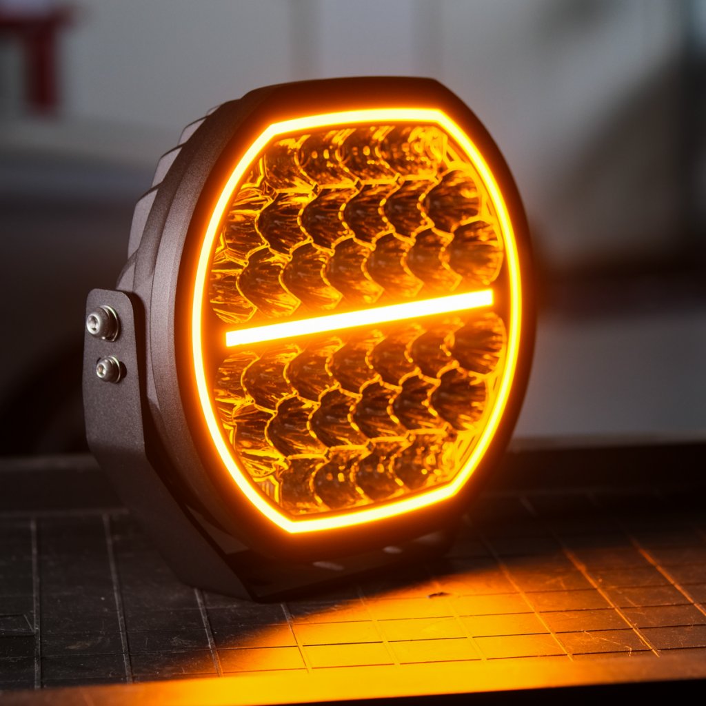 Kompakt designad lampa med xenonvitt eller orange positionsljus.