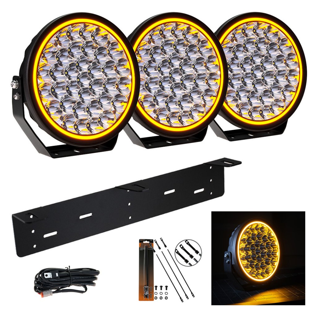 För dig som kör långt på mörka vägar. Tre 9"-lampor med Osram-dioder ger ett kraftfullt, jämnt ljus med imponerande längd och bredd.
