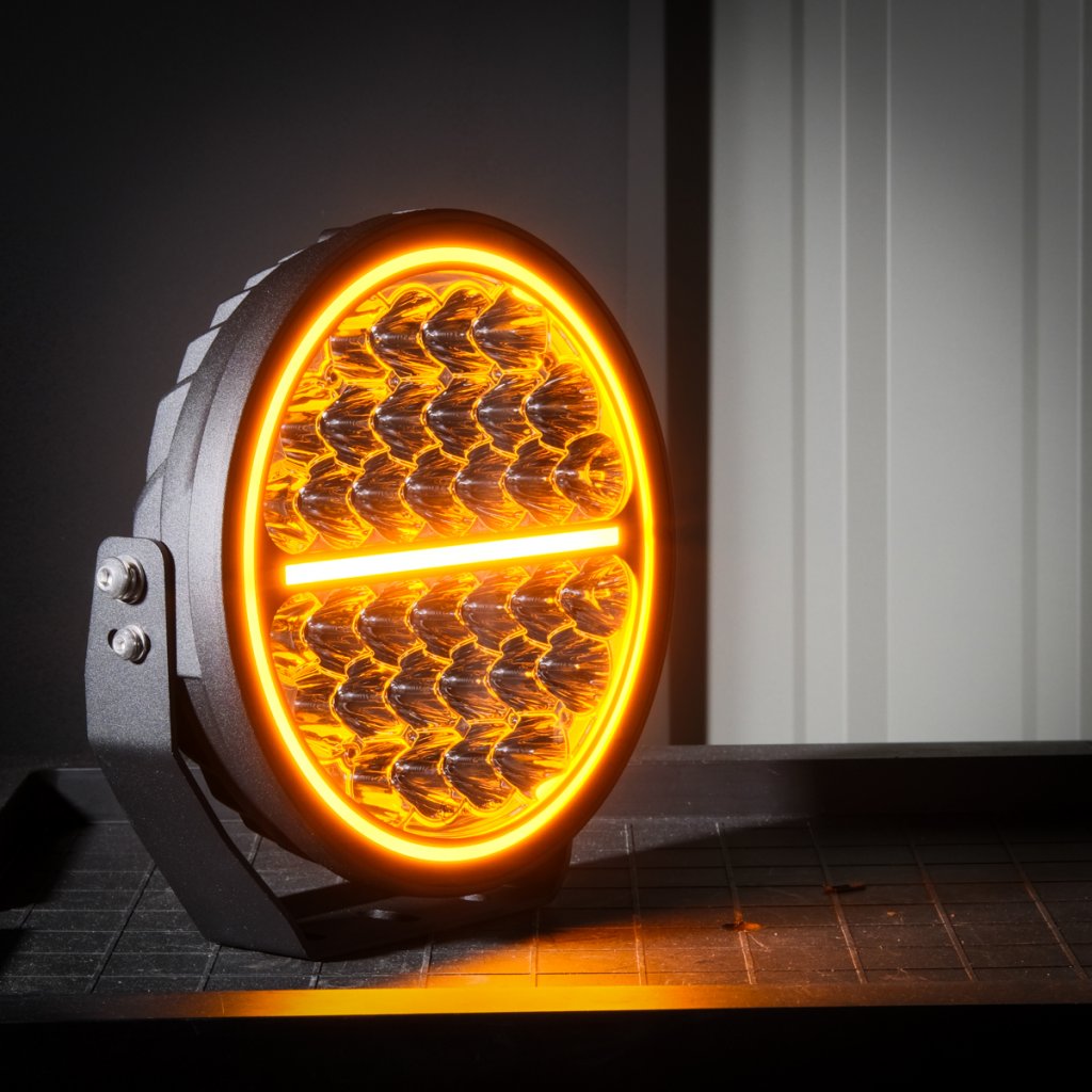 Snyggt designad lampa med xenonvitt eller orange positionsljus.