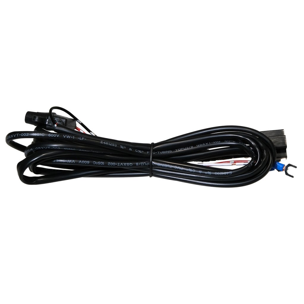 Kabelsatsen levereras komplett med tydligt markerade ledare för snabb inkoppling: röd kabel för +12V, svart kabel för jord samt två utgångar (blå och vit) för styrsignaler. Den ger en professionell installation och pålitlig funktion i alla lägen.