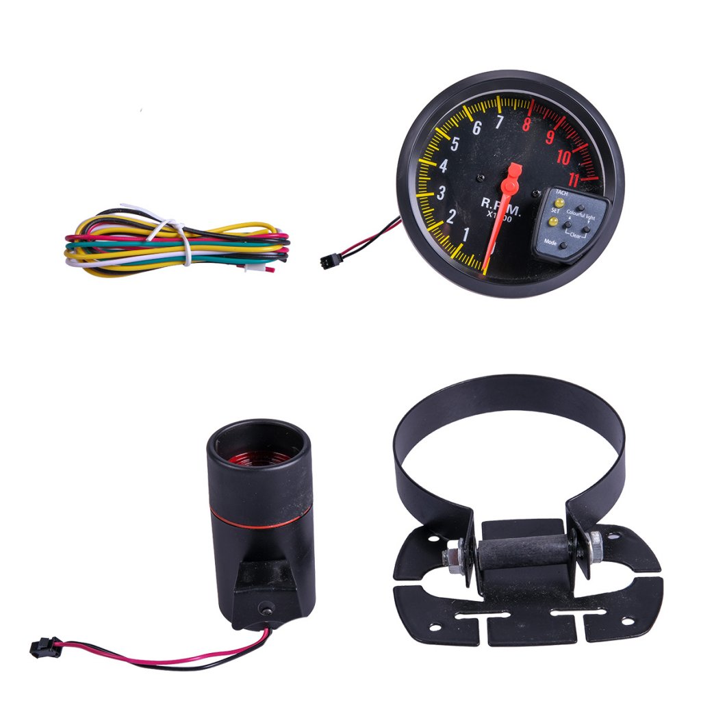 Varvräknaren är utrustad med ställbart shiftlight som hjälper dig att växla vid rätt varvtal. Den klassiska svarta designen ger en tydlig racingkänsla och passar perfekt i både gatbilar och trackday-byggen.