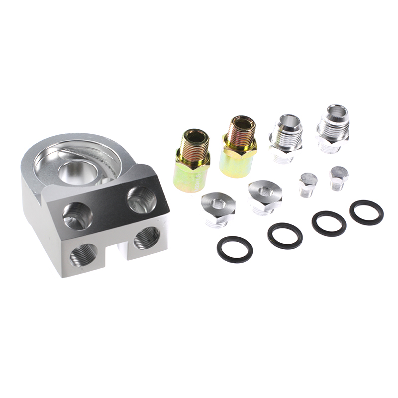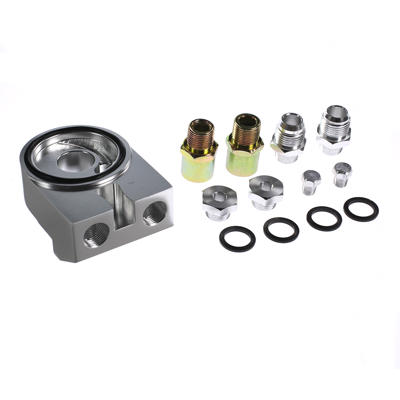 En mycket smidig adapter som monteras bakom oljefiltret för att montera extern oljekylare snabbt och säkert.