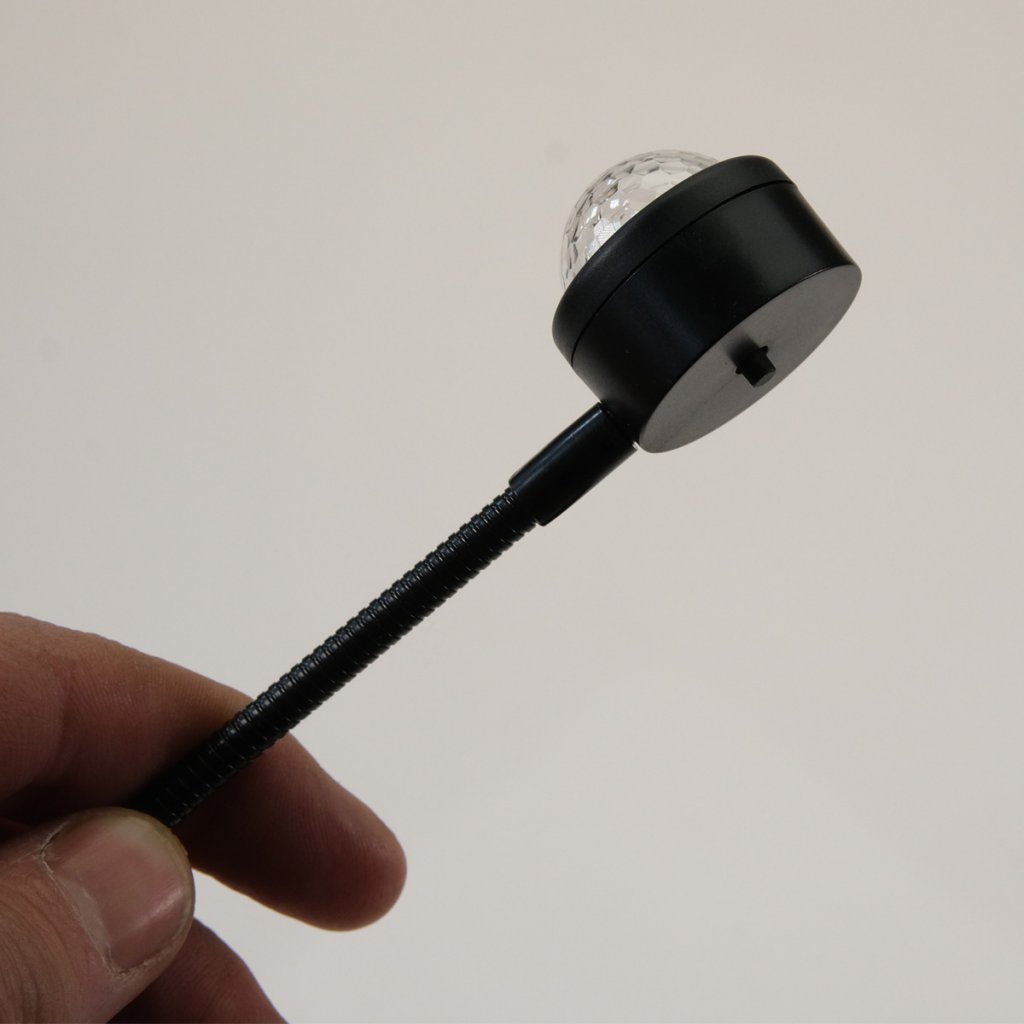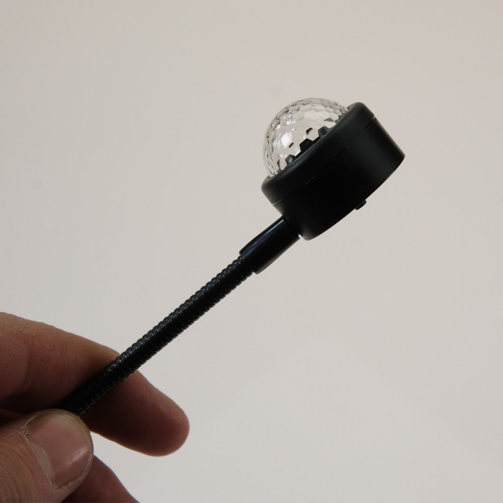 Plugga in usb kontakten och vinkla discokulan – Klart!